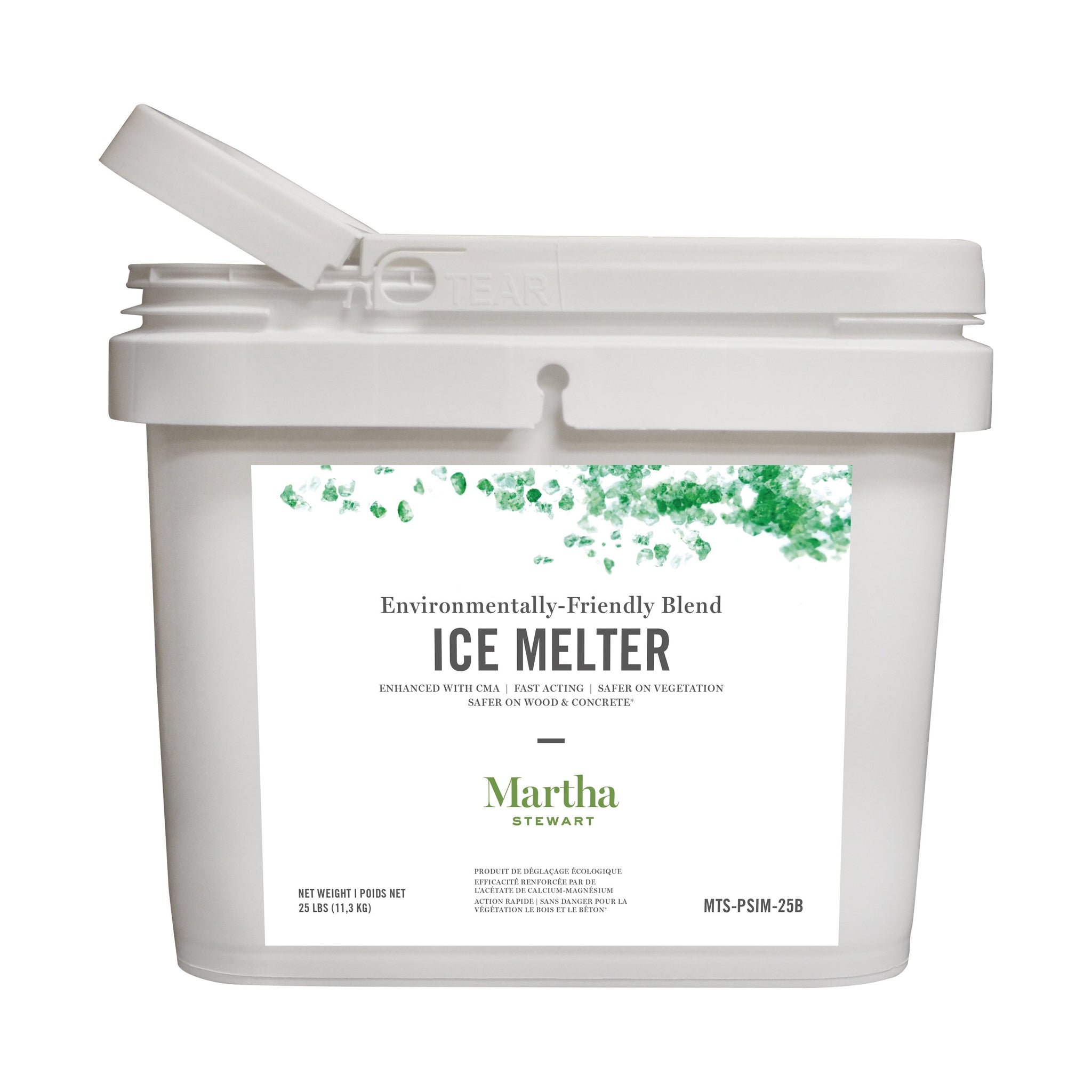 The Martha Stewart Environmentally-Friendly Blend Ice Melter is a greener and effective de-icing alternative to more harmful melting agents. When used as directed, it will not harm grass, wood, concrete, metals, or other vegetation and is safer for pets, children, and the environment.