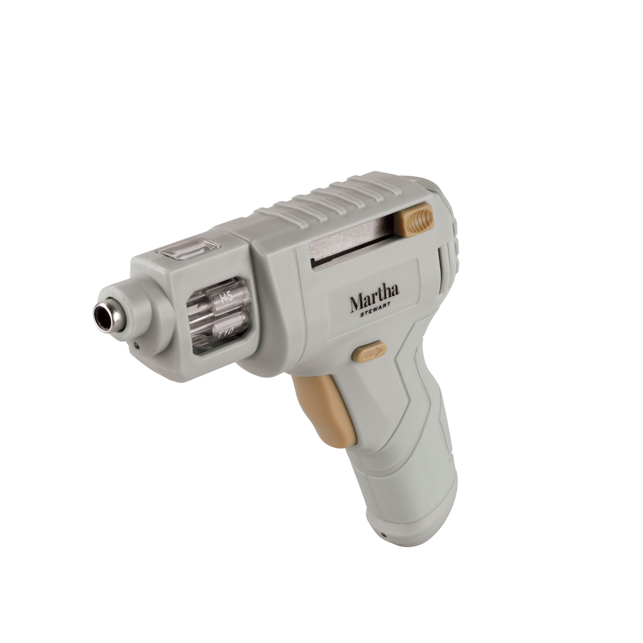 From Martha Stewart. Ideal for home and hobby, here's the one drill driver that delivers everything you could want in one compact, powerful tool. Drive screws, drill anchors; the powerful 4-volt, rechargeable high-torque motor is ideal for driving into wood, metal, plastic, and recharges quickly. Features ergonomic pistol-grip, space-saving barrel storage, onboard LED. The built-in clutch provides max torque, prevents stripping, overdriving.