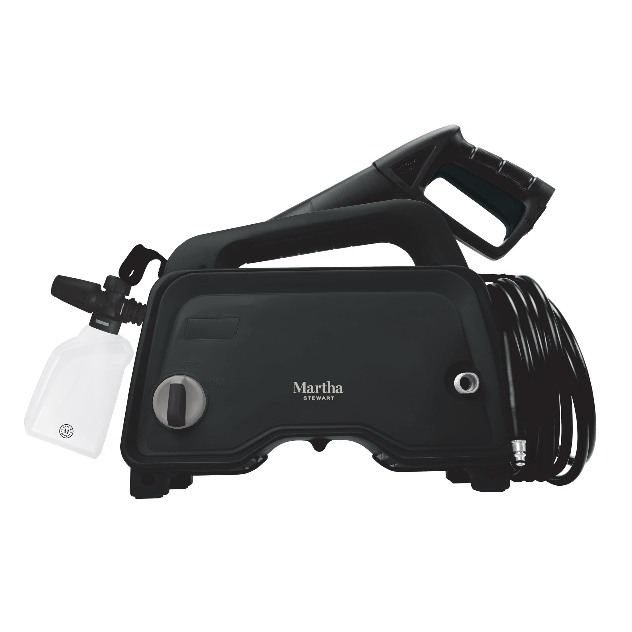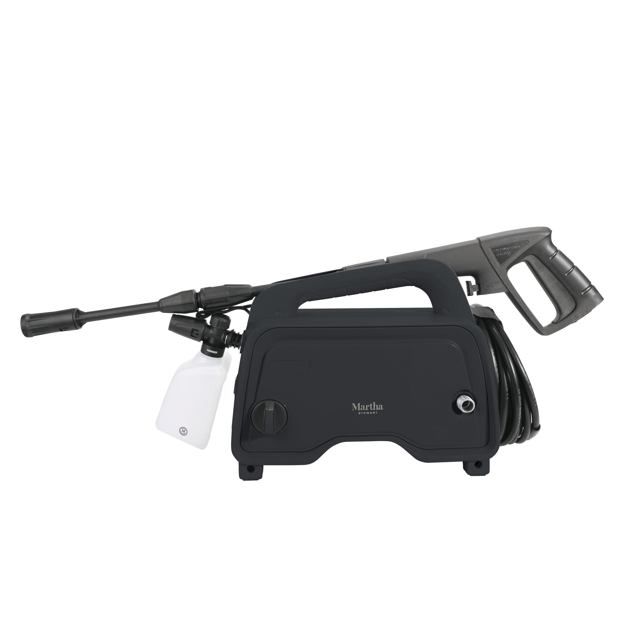 Get a handle on outdoor cleaning with Martha Stewart's pressure washer. It's convenient, lightweight, and easy to use! The compact electric motor makes it simple to carry around, yet it still packs a punch with 11 amps of power and a maximum pressure of 1450 PSI! Spray your entire space--from dirty driveways to spotty patios--to make your landscape spring ready. You can also use the included 13.5 Oz soap foam cannon to take your cleaning to the next level! From Martha Stewart.