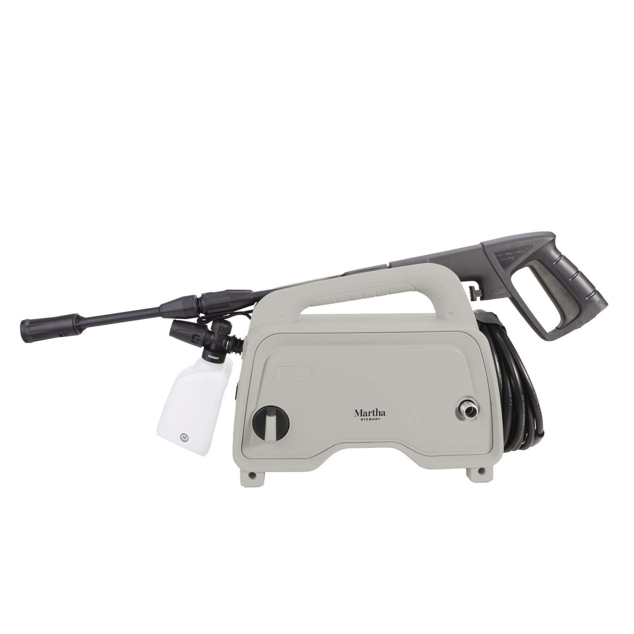 THE QUEEN OF CLEAN. Tackle your toughest on-the-go cleaning tasks with the Portable Electric Pressure Washer by Martha Stewart.  Packed with 11-amps of pure cleaning power, Martha’s machine is just the right size to take everywhere you go when you want to blast away stubborn gunk, grease grime. With up to 1450 PSI of max cleaning power and 1.48 gallons per minute, it's perfect for loads of light to medium-duty jobs around the auto, deck, dock, boat, cabin, porch, patio, and more!  Perfectly portable, lightweight and compact at under 12 lbs, the MTS-1300PW-RM will be your go-to tool to keep close at hand so it’s always ready for your next cleaning project. And with its onboard, 13.5 fl oz detergent tank you’ll always be ready to give your cleaning blast a soapy boost to demolish every last bit of dirt and debris! So keep the bulky pressure washer in your shed, and get ready to spray away your outdoor cleaning chores in next to no time.