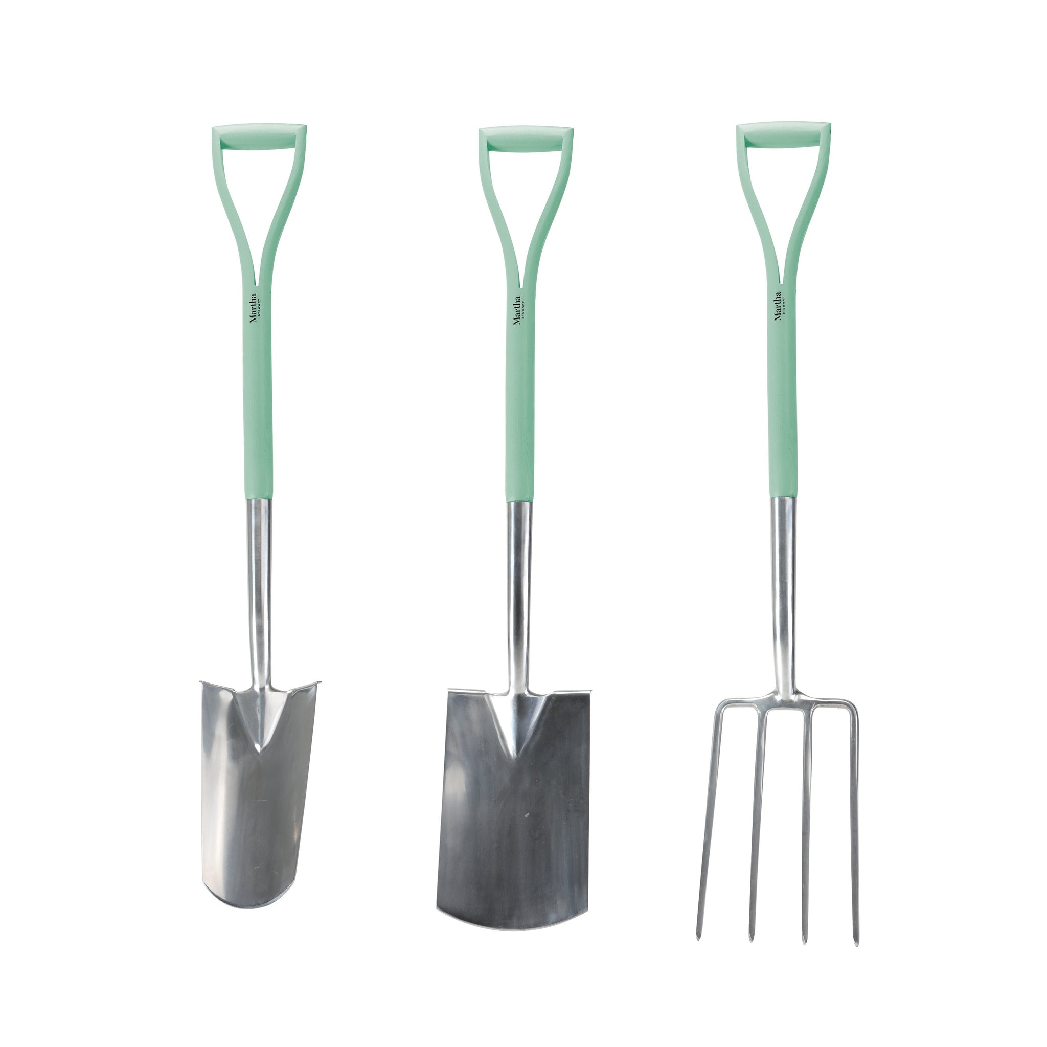Give your lawn and garden the care it deserves with Martha Stewart's classic garden set. Made of premium quality stainless steel, this essential trio of gardening tools are ideal for a variety of yard care tasks — from transplanting bulbs, to digging trenches and post holes, to turning and breaking up piles of compost. With rugged, hardwood handles and solid steel construction you'll be able to dig all day!