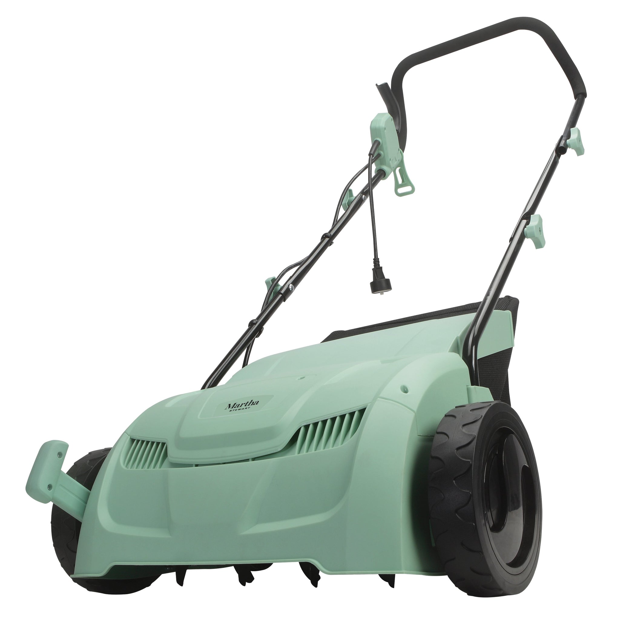 Martha’s electric dethatcher is the perfect tool to keep your lawn in tip top shape. Powered by a robust 12amp motor, it rakes a 12.6” wide path in a single pass to get your job done fast. Use the 5-position depth control knob to tailor the raking depth from -0.4 in. to 0.4 in., depending on your lawn’s scarifying or dethatching needs. Scarifying your lawn at regular intervals cuts grass roots and encourages growth for thicker, healthier turf.