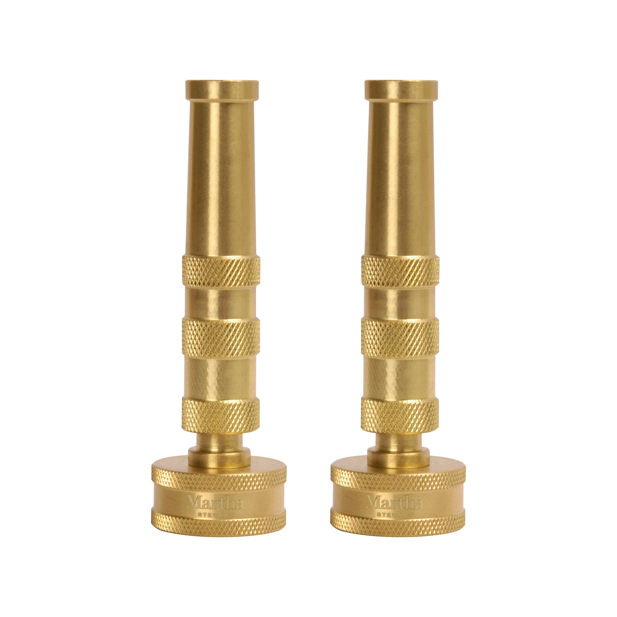 The Martha Stewart Heavy-Duty Solid Brass Twist Hose Nozzle features a solid brass construction that provides years of reliable, rust-proof, water-tight connections, and resists crushing. It attaches securely to a standard garden hose and allows you to go from a gentle shower to a jet stream with a quick twist.