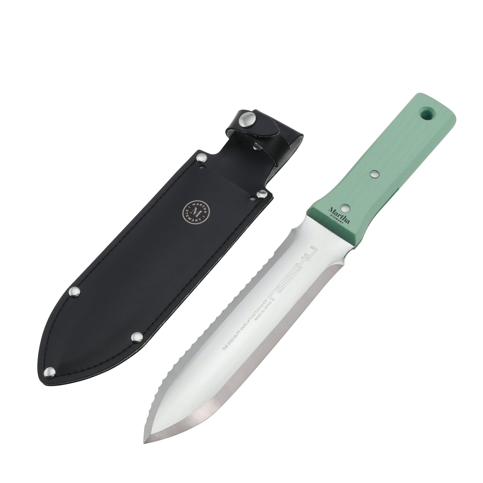 The Japanese Weeding Knife by Martha Stewart is the ultimate garden landscape digging tool – direct from Japan. Crafted from the finest quality Japanese stainless steel, this durable, dual-purpose concave blade features both straight and serrated edges ideal for dividing plants, digging out weeds, sawing small branches and vines, transplanting bulbs, cutting roots and a host of other landscaping chores! A rugged wood handle offers a firm grip to take on your toughest garden tasks, and a ruler marked on the blade of the knife will help you to find the ideal depth for planting bulbs. Bring out the beauty in your yard and the ease in gardening with Martha’s multi-purpose tool.