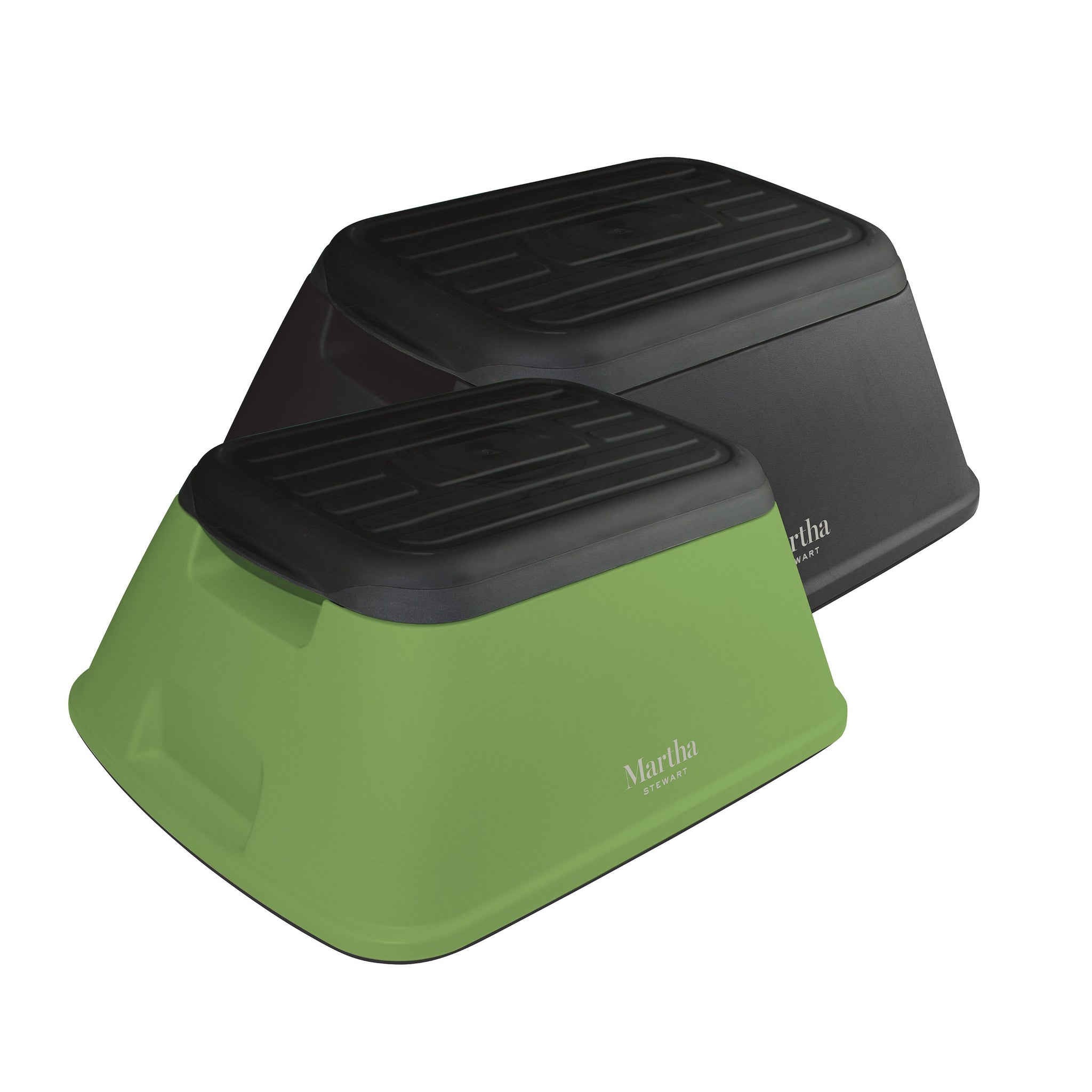 Step up to Martha’s multi-purpose stool, featuring an extra wide base for added stability around your home and garden. Engineered to support up to 500 lbs, it’s a safe step for senior citizens reaching high shelves, toddlers at the sink, climbing into SUVs, changing ceiling bulbs - and won’t tip! A great garden seat for weeding, flip it to fill, and use the handles to tote tools and plants around the yard. This two pack includes two stools for you to use around your home and garden, one in green, and the other in black.