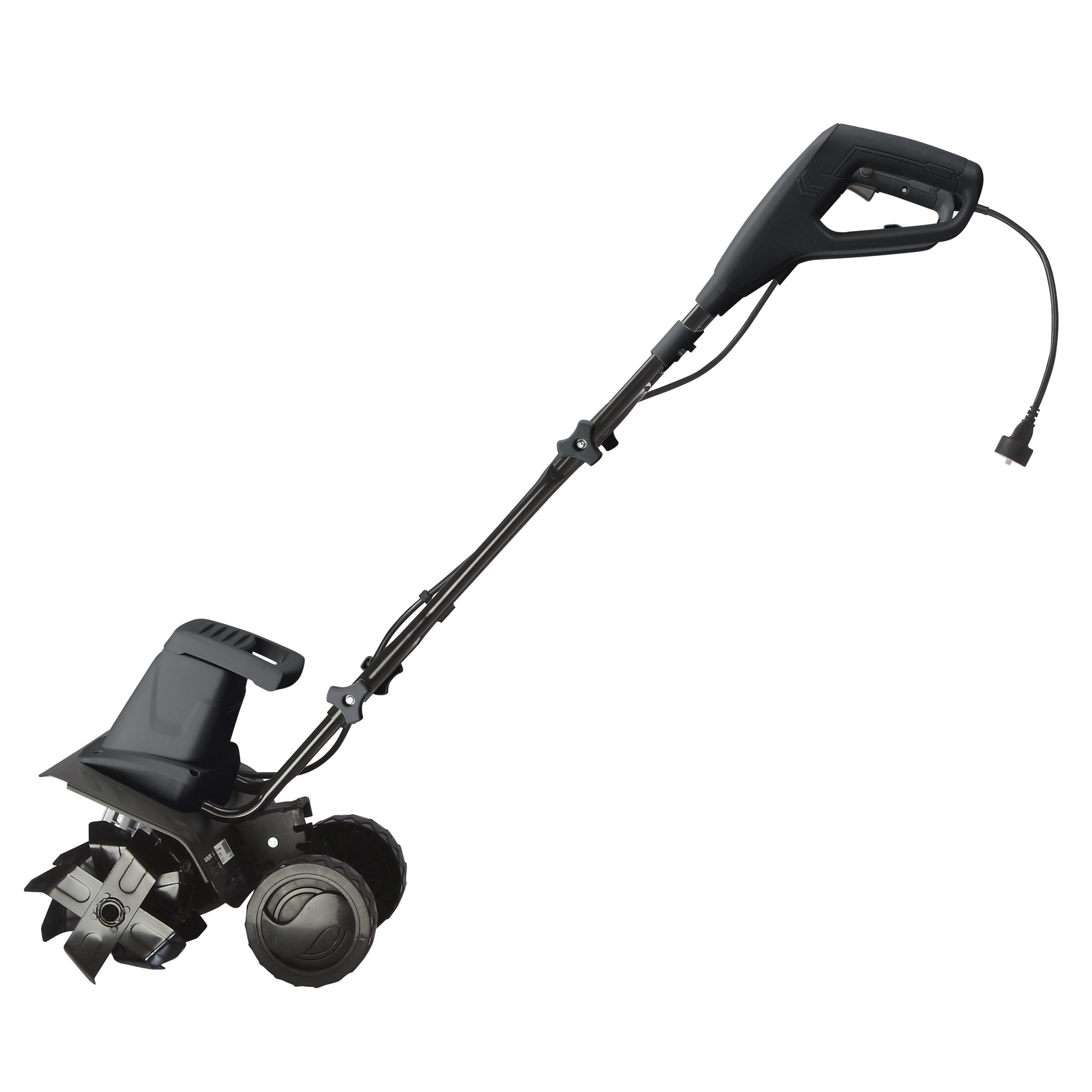 Give your green thumb a helping hand to quickly cultivate an area up to 16" wide and 8" deep in seconds. The powerful 13.5-amp electric motor pulverizes dirt while the 6 steel angled tines effortlessly slice through the soil controlling weeds and ensuring maximum aeration for planting. 3-position rear wheel adjustment controls desired depth, and a collapsible handle assures compact storage. Great for gardens, flower beds, preparing compacted soil for planting, mixing in compost.
