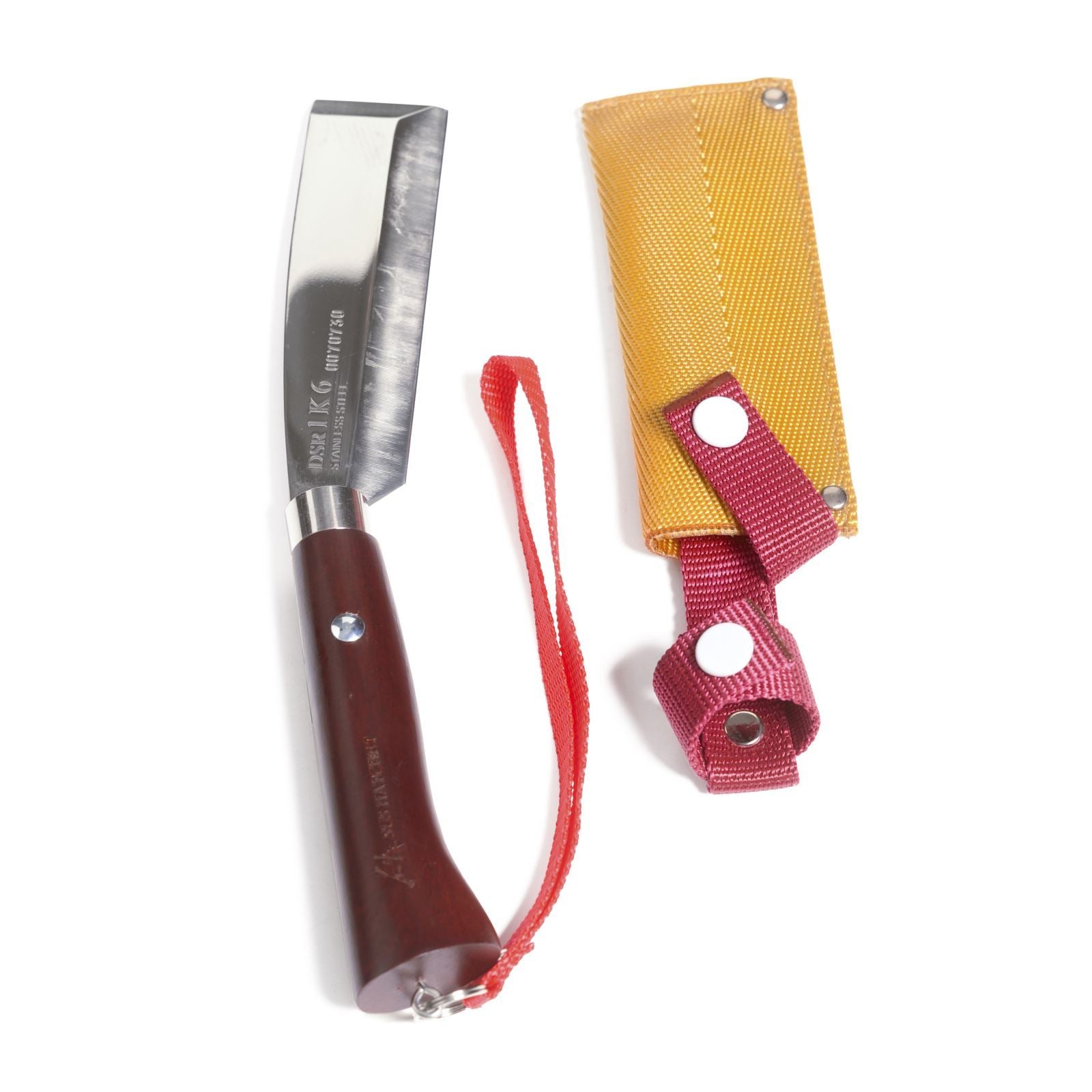 The Nisaku Japanese Stainless Steel Hananata is superb for a variety of chopping jobs around the home and garden. Campers, fishermen and hunters will also appreciate the razor sharp edge for cutting firewood, splitting kindling and other camp jobs. The wood handle is angled to the blade to reduce user fatigue and stress to the elbow. This special edition model is forged with a higher quality DSR-1K6 stainless steel, making it more durable than traditional outdoor knives, and requires minimal sharpening. Includes a sheath.