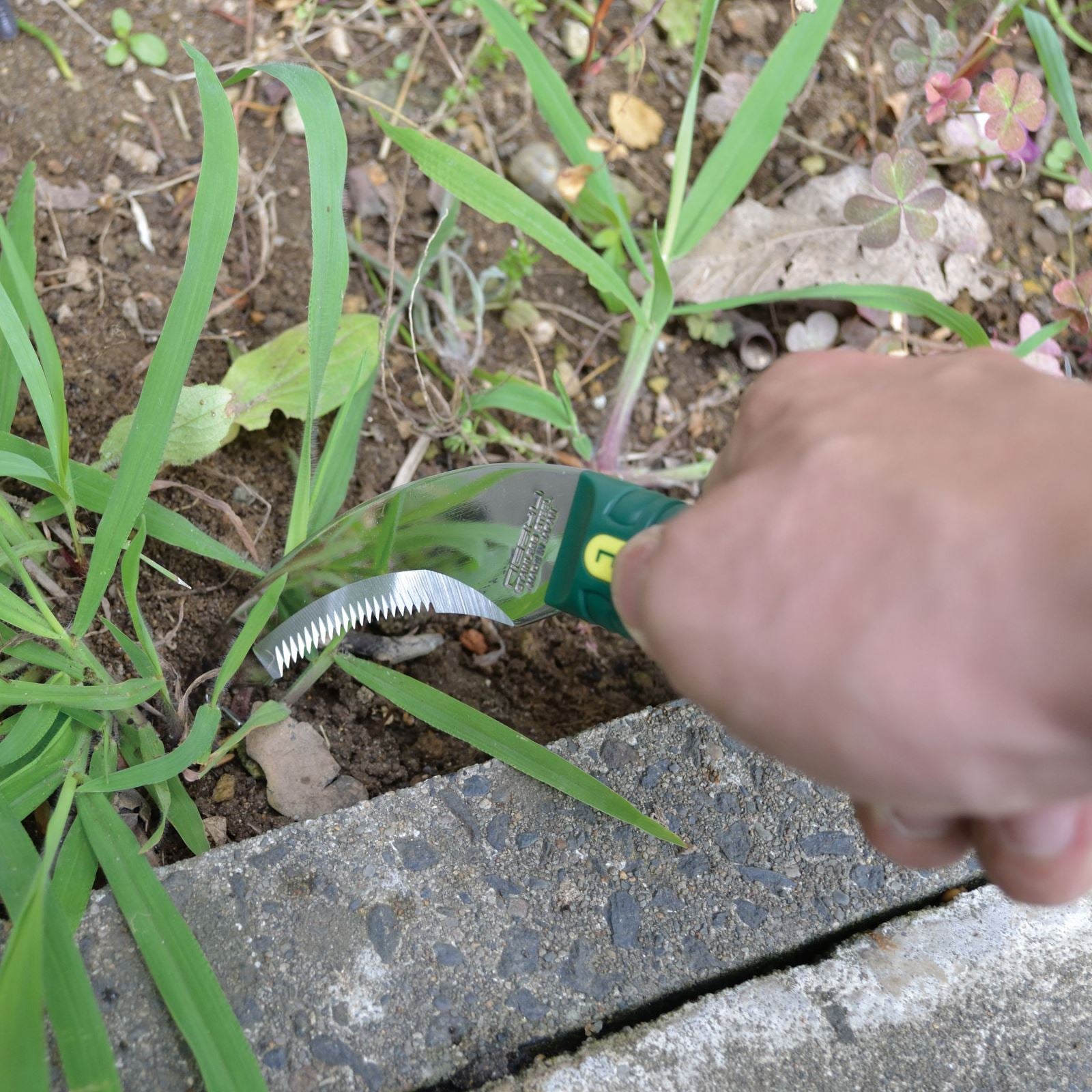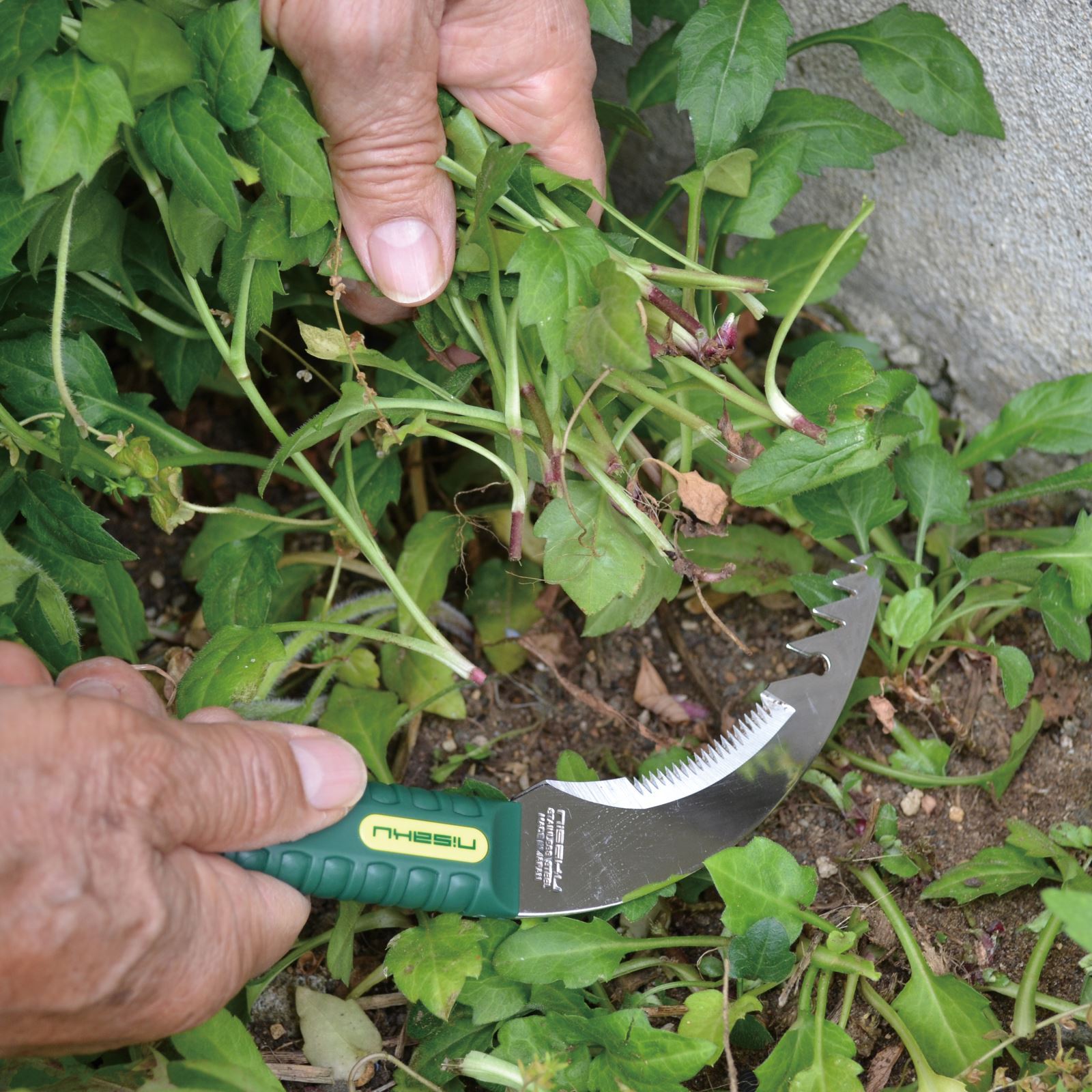 The Nisaku Kusanukikama is very sharp with a dual edged blade that excels at cutting thick shrubbery and grasses.