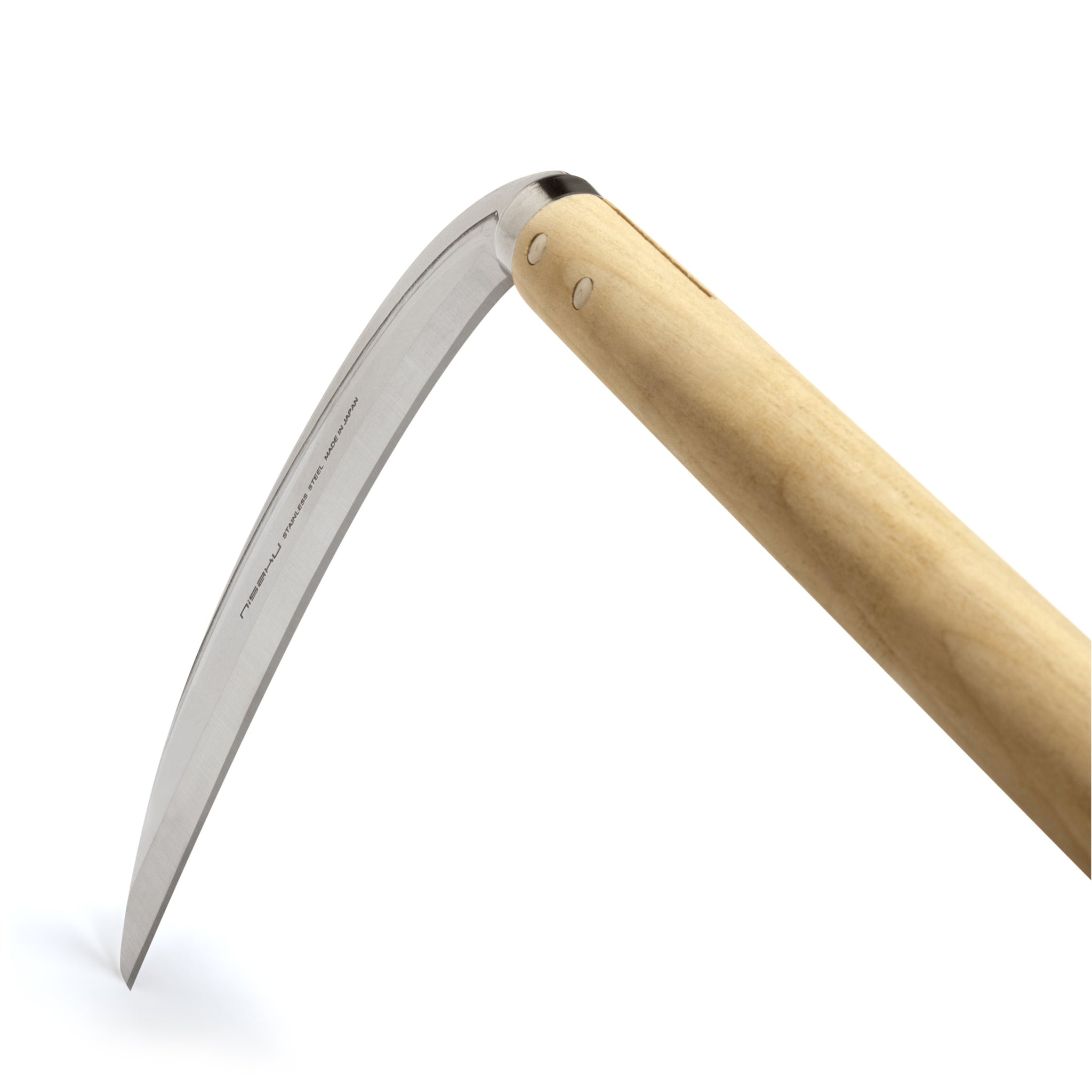 Bring quality and reliability to your garden work with the Nisaku Mikadukigama Grass Sickle. Designed for weeding and cutting tall grasses, this essential tool features a sturdy wooden handle and a stainless steel blade with a precision edge.