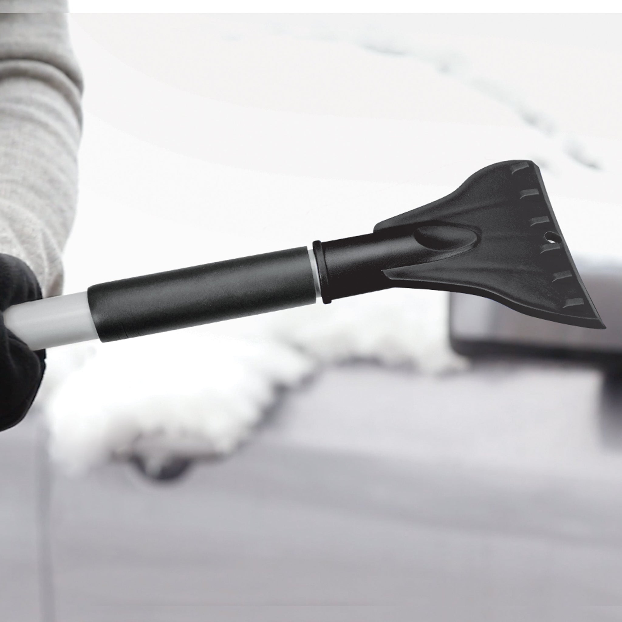 SWEEP, SCRAPE, AND ILLUMINATE! Meet illum-n-broom: the bright new tool for safe winter travel. A revolutionary 4-in-1 device, illum-n-broom is a snow broom, ice scraper, flashlight, and emergency blinker all in one convenient and compact tool. Now you can safely sweep snow and scrape ice off your car day or night, without damaging its paint, trim, or glass. And illum-n-broom’s telescoping pole extends from 30 to 49 inches to easily access the snow piled on top of your car’s roof or trunk. Two powerful LED lights instantly brighten your task, and the built-in blinker doubles as an emergency flasher when you really need to be noticed. Plus, illum-n-broom stows neatly inside your car, so it’s always ready when you need it. Just sweep, scrape, and illuminate! Weight: 1.5 lb. Imported. Requires two AAA batteries (batteries not included).
