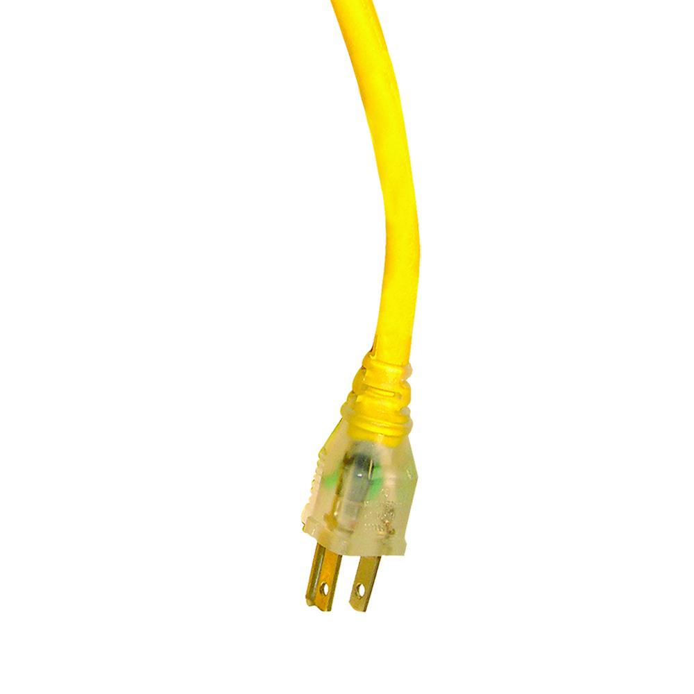 The Snow Joe PJEXT50-B-RM 50-Foot (SJTW) extension cord is designed to withstand the toughest elements. The cord’s outer jacket provides superior resistance to oil, grease, moisture and abrasion is extremely flexible. Made from PVC, this ETL and OSHA rated cord can weather temperatures from a below freezing -40°F to 140°F. It’s fluorescent yellow color makes this cord easy to identify during use. The Power Joe indicator plug glows when the cord has power flowing. PJEXT50-B-RM is rated at 15 AMPs to deliver the maximum amount of power.
