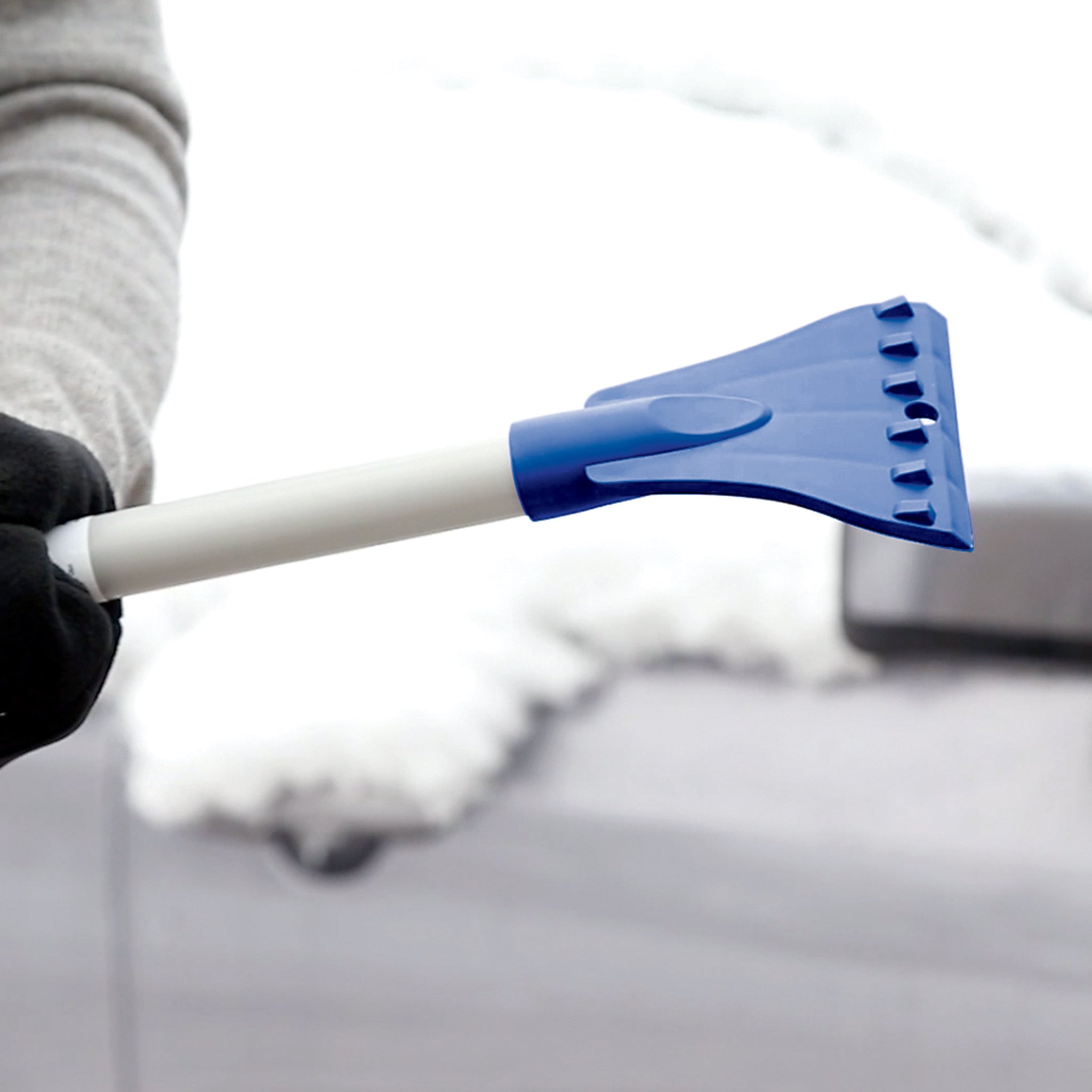SNOW PROBLEM! The Snow Joe® Snow Broom model SJBLZD makes quick work out of the snow piled on the roof, hood, trunk or windshield of your car. Its patented dual-purpose design features a broom head on one end and a built-in ice scraper on the other, so you can quickly push heavy, wet snow off your car, then clear away the ice build-up on your windshield with just one tool. Made with a durable, reinforced, non-abrasive foam head, the Snow Broom safely and effectively sweeps snow off your car without scratching the glass surfaces. Plus, its telescoping pole extends from 33 to 52 inches to provide maximum reach with minimal strain. Weighing only 1.2 pounds, the Snow Broom is super easy to handle and stores neatly inside the trunk of your car with its built-in bracket holder. GET EQUIPPED® this winter with the Snow Joe® Snow Broom and clear out fast from tough winter messes