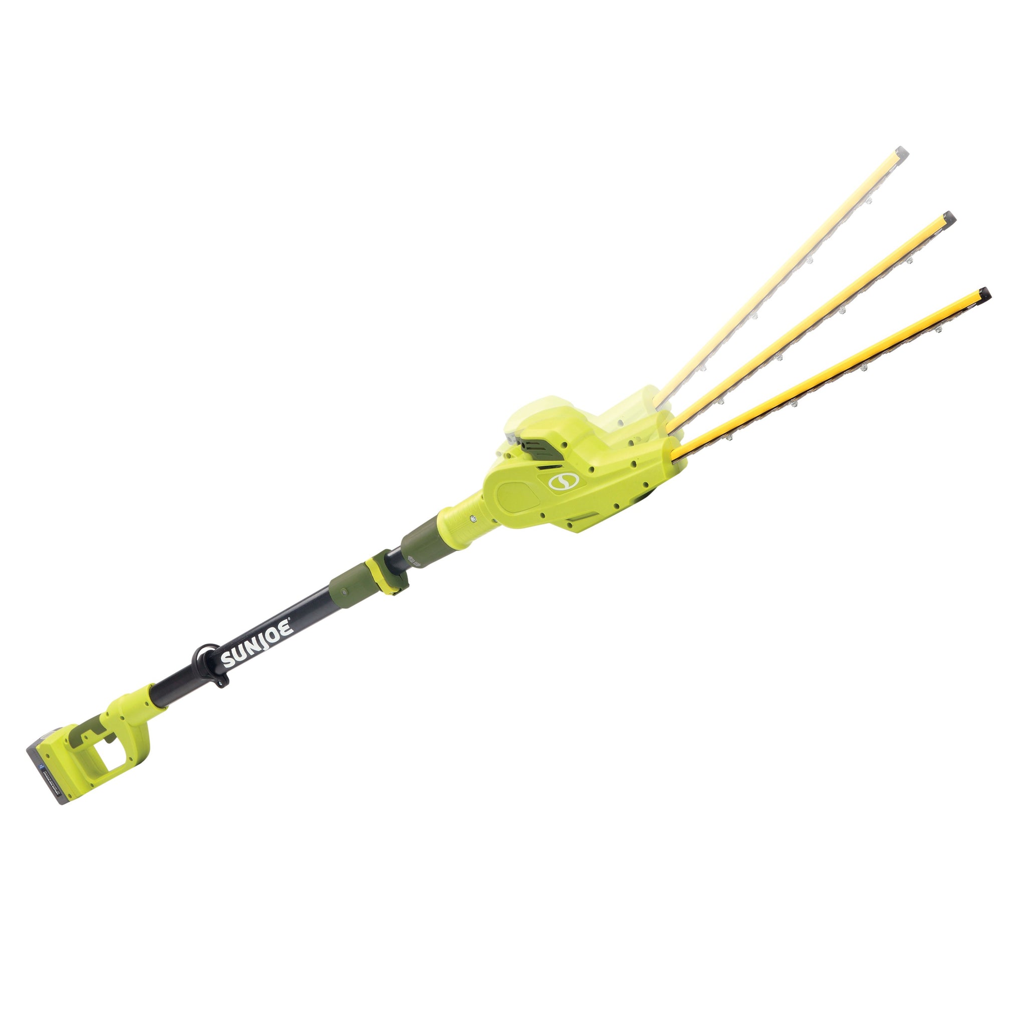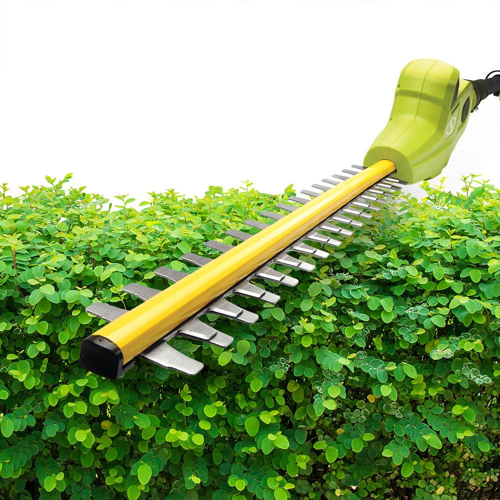 SUN JOE's multi-angle pivoting head allows for precise trimming of most tall bushes and hedges. 20ViONLT-PHT17's 17-inch dual action, rust-resistant steel blades cut efficiently in both directions, and the telescoping pole adjusts from 6 ft to 7.9 feet for up to 12.5 feet of overhead reach. And when you’re ready to go low, simply pivot the head and point the pole down to work beneath the bushes.