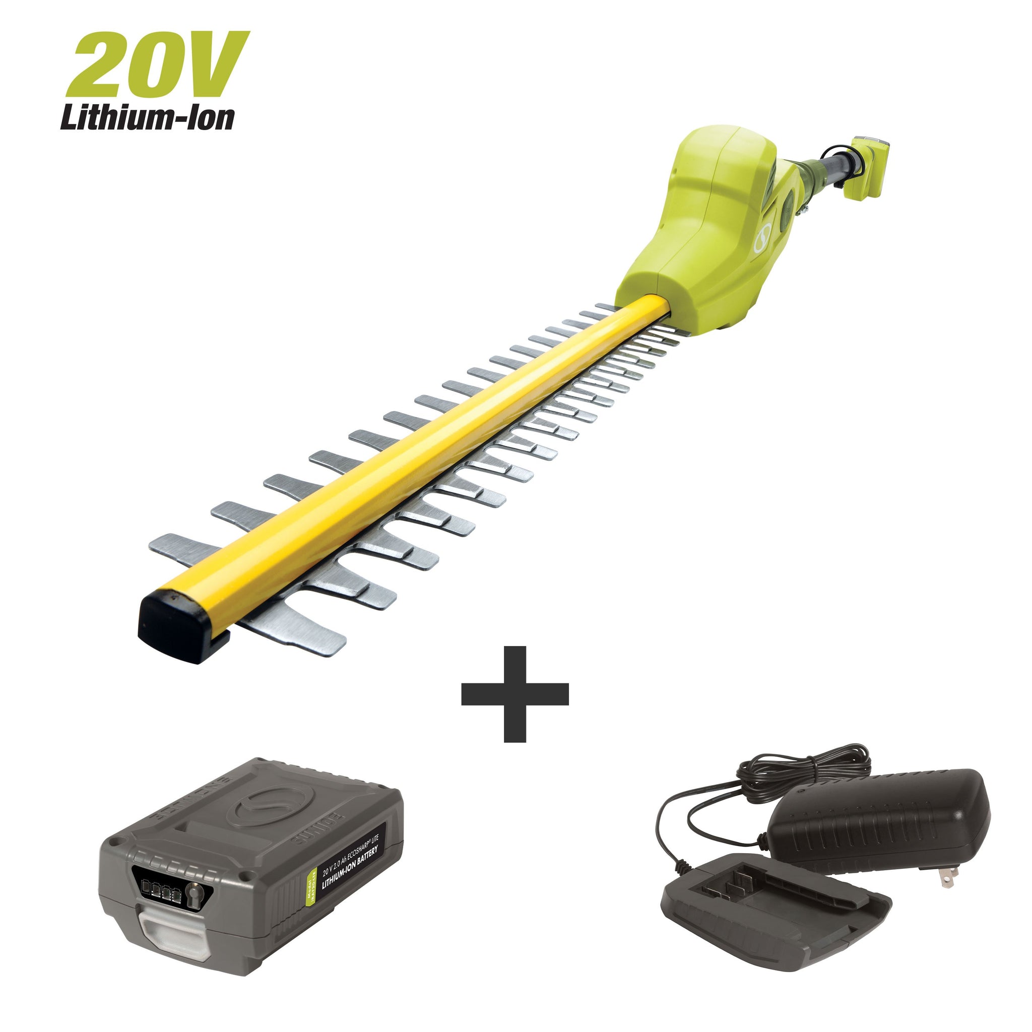 GIVE YOUR TALLEST HEDGES CLEAN CUT EDGES. Is your yard out of shape? Is your garden overgrown? Ditch the ladder and shape up the shrubs while you stand safely on solid ground with the SUN JOE 20ViONLT-PHT17 Cordless Telescoping Pole Hedge Trimmer. SUN JOE's 20 Volt 2.5 Ah EcoSharp rechargeable battery system makes it safe, simple and easy to conveniently clip tall bushes, and shear shrubs and hedges just beyond your reach. Plus, at just 8 lbs, it’s ideal for grooming in tight spaces where a traditional hedge clipper simply can’t cut it, like between the house and the hedges, beneath the bushes — or anywhere power is at a premium. Unlike gas powered tools, the 20ViONLT-PHT17-SJG employs the most advanced lithium-ion battery technology to deliver up to 55 minutes of whisper-quiet, no-fade power with zero carbon emissions for cleaner air.