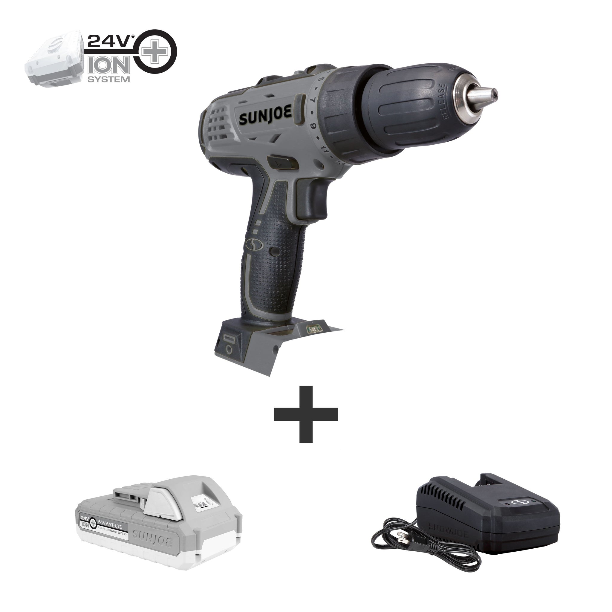 MAX TORQUE TO TACKLE TOUGH HOME HOBBY PROJECTS! Put power control at your fingertips with the 24V-DD-LTE 24-Volt Max Cordless Drill/Driver from SUN JOE. Powered by Sun Joe’s exclusive 24-Volt iON+ Battery System, the cordless drill/driver provides up to 80 minutes of rechargeable lithium-ion battery runtime and quickly charges in just 55 minutes, so you can simply plug in, power up, and go!