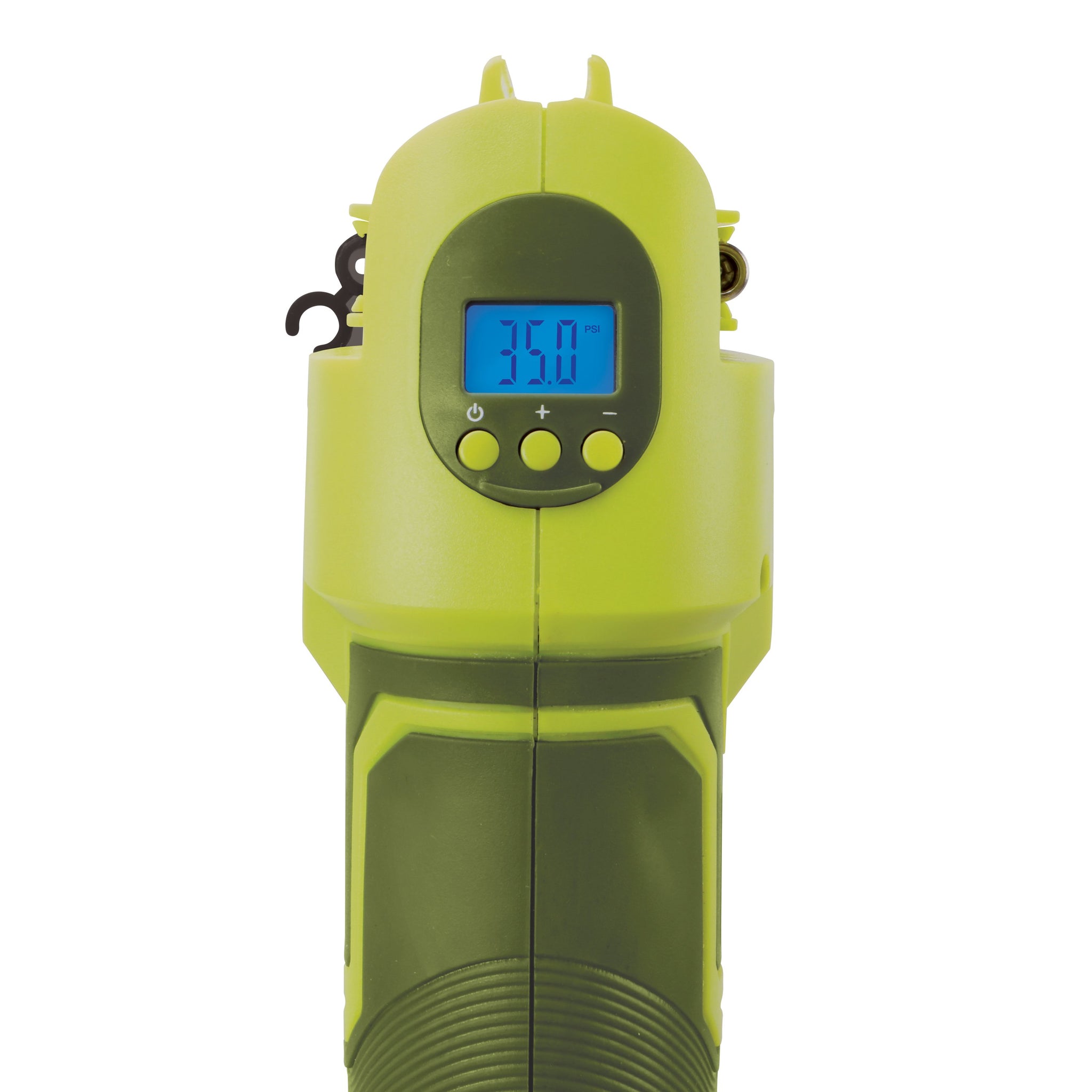 Compact and convenient for camping, or commuting - it’s the power-packed rechargeable pump that’s perfect anywhere power is at a premium -- like at the park, at the pool, or on the road. Keep tires at the perfect pressure, inflate a bike tire, pool float or sport ball in seconds. Simply set the PSI on the digital display and pull the trigger. The AIRJ24C automatically stops at your preset pressure.