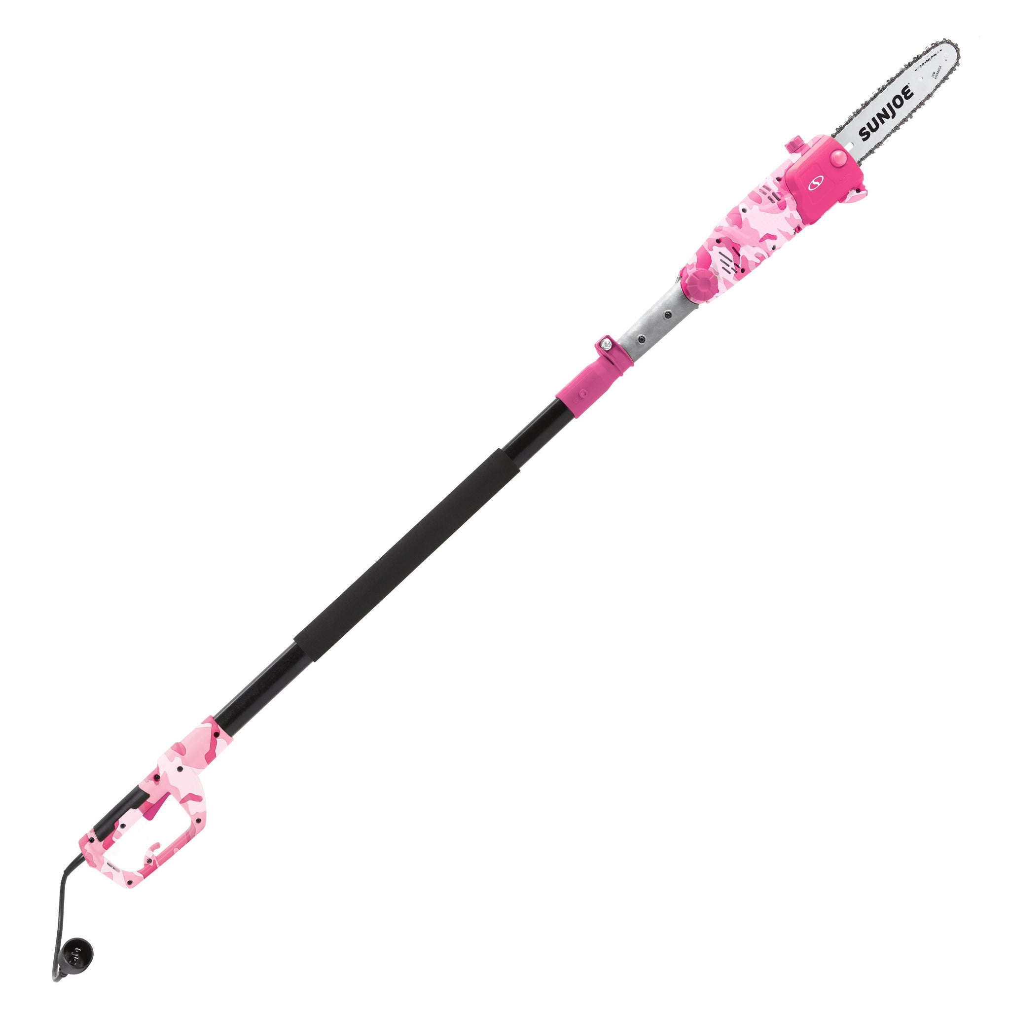 SAW WHAT YOU SEE! Tackle those hard-to-reach branches with ease. The Sun Joe® SWJ803E electric pole chain saw takes the danger and difficulty out of trimming your overgrown trees. Stand safely on solid ground and simply adjust SWJ803E’s telescoping pole. Pole extends from 5.5 ft to 8.8 ft to gain up to 14 feet of overhead reach. Powered by a robust 8-amp motor, the SWJ803E’s multi-angle head can handle the most stubborn tree limbs up to 9.5-inches thick. It features a durable, 10-inch Oregon bar and chain with an auto-oiler to keep the bar and chain fully lubricated during use. Unlike gas-powered tools, SWJ803E is powered electrically, so you’ll reliably power up with the push of a button without having to deal with smoke, fumes, unpredictable starters or costly tune-ups. Plus the SWJ803E comes equipped with a built-in safety switch to prevent accidental starting. The Sun Joe® SWJ803E electric pole chain saw carries a full two-year warranty.